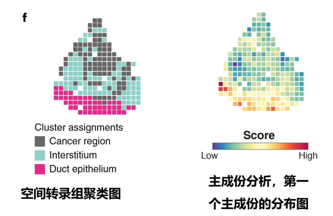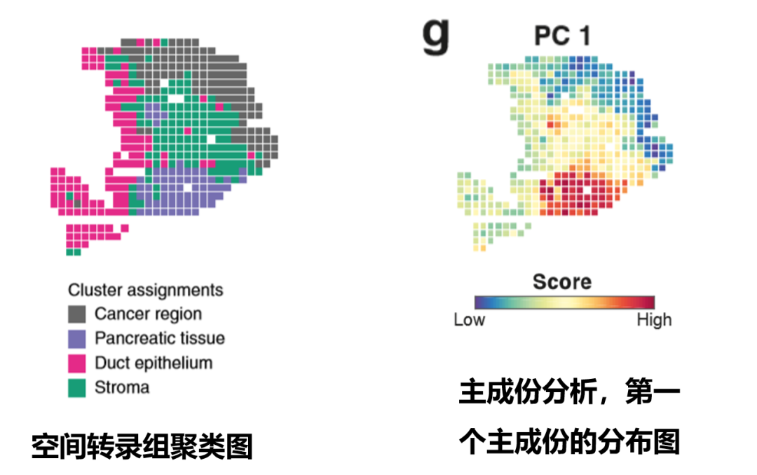 空间转录组的肿瘤部分,对应于主成份分析的低分部分,对应得很好