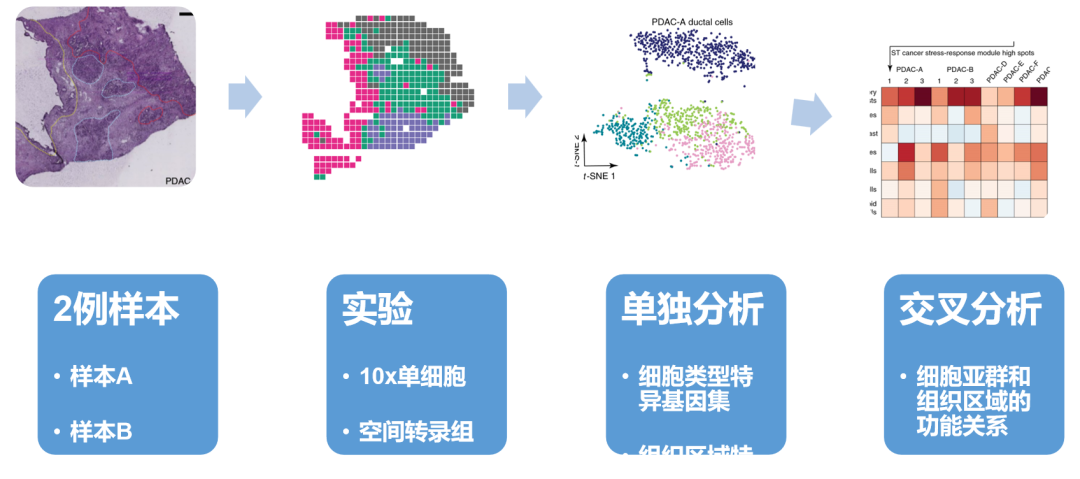 翻成中文,就是《基于微阵列的空间转录组学和单细胞RNA-seq的整合揭示了胰腺导管腺癌的组织结构》