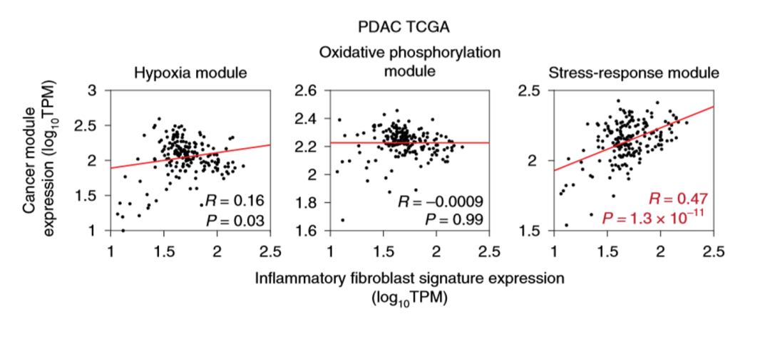 验证的结果如图所示,我们可以看到炎性成纤维细胞的压力响应相关的模块是有很强的相关性的。