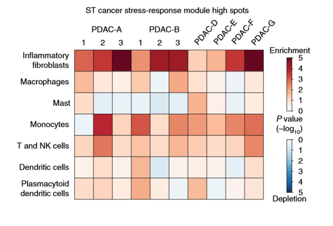 结果如图所示,我们可以很明显地看到排在第一行的炎性成纤维细胞,颜色最深,富集程度最高、最明显。