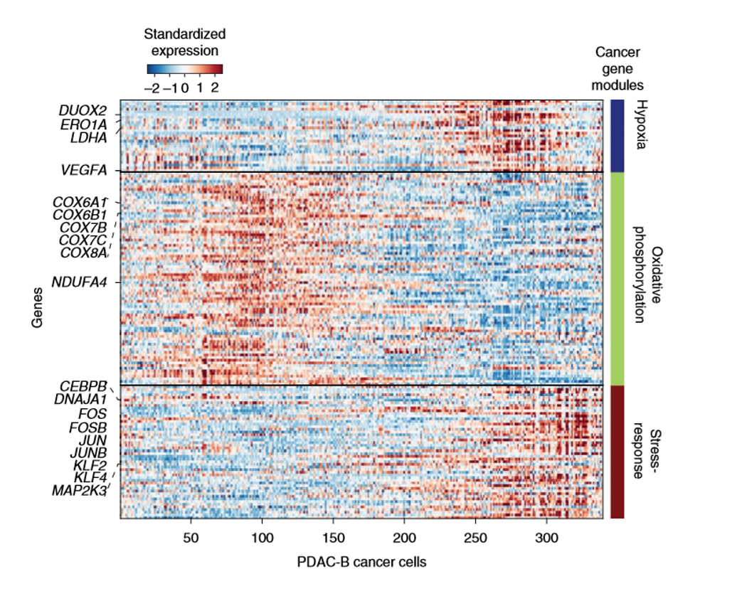 并且这群细胞还表达低氧蛋白,这是另外一个有意思的事情,因为肿瘤组织往往因为代谢快,消耗大量氧气,同时血管又不够多,导致组织中氧含量低,所以说这是一个有意思的事情