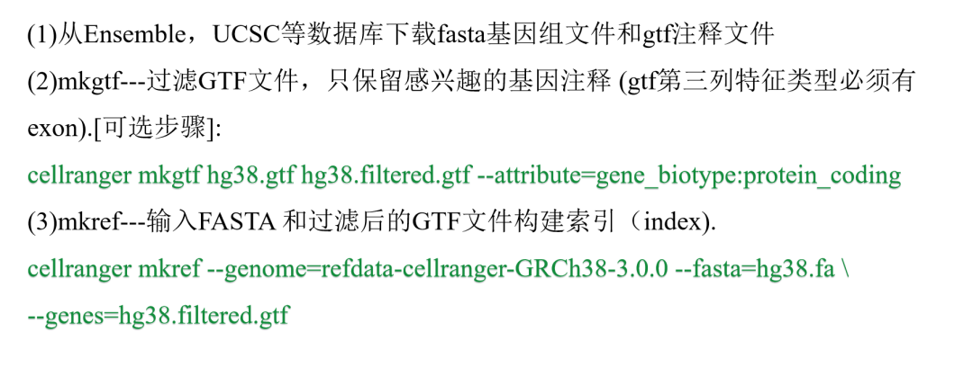 spaceranger mkgtf/ref :构建参考基因组索引文件;人和小鼠参考基因组可从官网下载,其它物种从Ensemble,UCSC等数据库下载fasta基因组文件和gtf注释文件