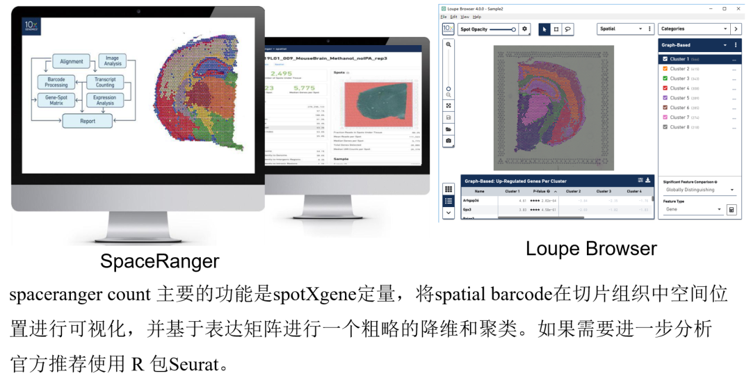 利用10x Genomics官方分析流程及软件(Space Ranger & Loupe Browser),可将细胞分群信息及其空间定位相结合,深入探索不同空间定位下特定细胞亚群的生物学功能。